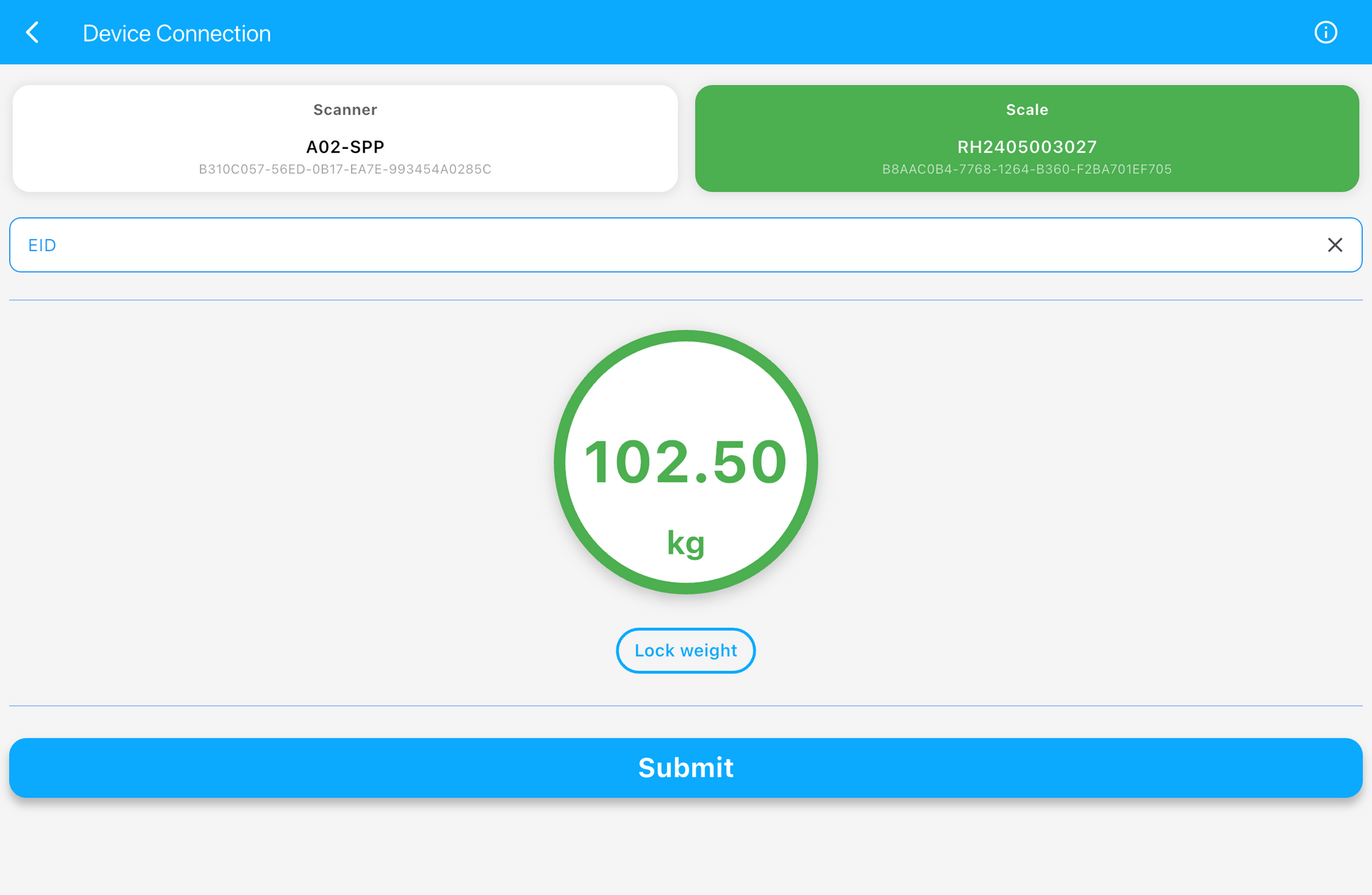 - Bluetooth data connect with AgriEID Lite mobile app for iOS and Android